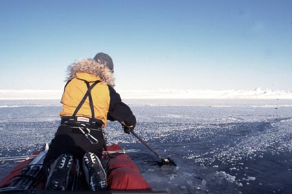 PS: These days, we have been publishing photographs that were taken in 2002 during the Compas Pole II crossing attempt, since the team is unable to send any pictures due to the battery problems they have been facing.