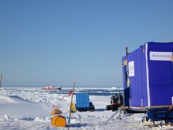 "As the swell did its work several other large areas of ice slowly peeled away, crumbled and fell into the sea to join the mass of ice already heaving up and down in the swell. It was quite a significant collapse with hundreds of tonnes of ice, each the size of several large houses, falling victim to the sea. It was pure chance that we were there to witness it and it was sobering to realise that the area where we had unloaded the vehicles, the fuel and all the cargo is now floating around in the sea in a thousand pieces, but it has to be said that given the sea's conditions we would have long since retreated out of harm's way. Within five minutes the coastline had been eroded by 50 metres or more and then it all stopped and it was as if nothing had ever happened - but we know the story. When the ship finally returns we will have to make a careful assessment before we can offload those last few remaining items. ..."
