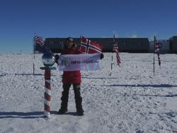 Before being transported to Union Glacier base camp, he had the opportunity to get off the plane a while at the Amundsen Scott American base at the South Pole. There he began to sing the first verse of the Norwegian National anthem. The story does not tell if Stefen Dahl was standing at attention or not...