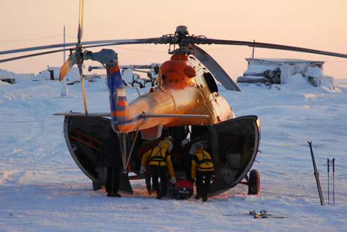 The expedition equipment is loaded onto the MI8 helicopter.